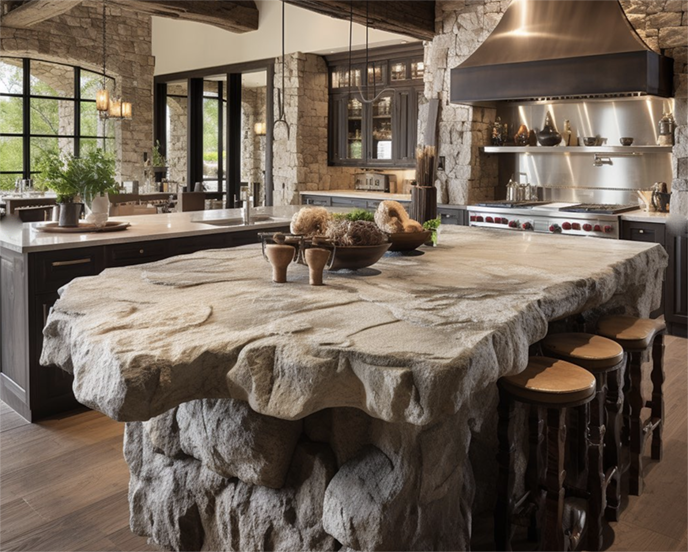 項目描述:? 水泥仿木餐桌是一種將自然元素引入室內,通過仿石材質和假山景觀設計,創造出如同置身山水之間的用餐氛圍。這類水泥仿木餐桌餐廳以仿石和假山為核心設計元素,融合了自然與人造景觀,為客人提供沉浸式的自然體驗。大量使用仿石材質打造的水泥仿木餐桌,呈現出自然石材的粗糙紋理和厚重感,賦予空間一種大自然的質樸氣息。