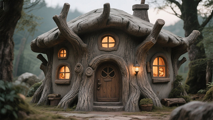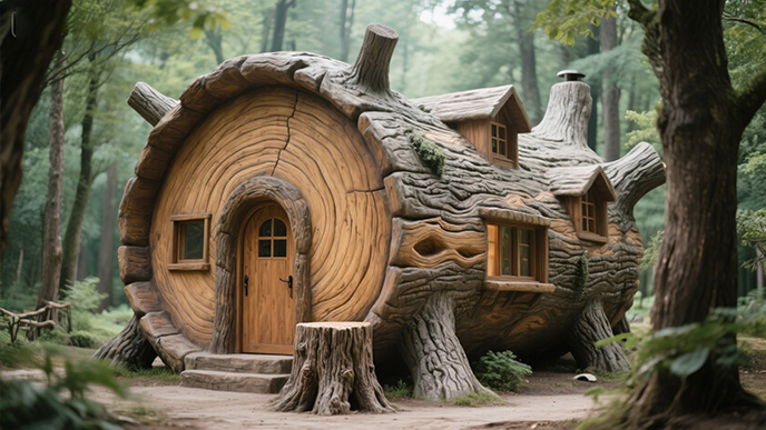 項目描述:現場制作的水泥仿木屋裝飾,就是把普通的門面房裝飾成仿木的效果,整體做成一根巨大的樹木一樣。