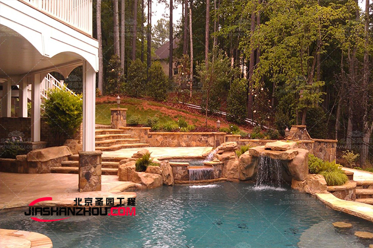 從而做到天人合一,情景融合,讓人遐想連連。水泥假山還有組合和劃分空間的作用,指引觀賞思路,使景觀層次分明。借助水泥假山做一些踏步可以區分層次,點綴地表,和水上景點,還可以指引游客的觀賞路線,增加人們的賞景心情。
