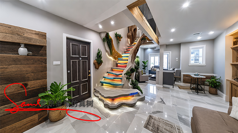 值得一提的是這里的仿真樹室內裝飾,空氣蘭樹搭配蕨類植物,仿佛走進了一個自然與建筑完美融合的仙境。二樓的露天臺仿真樹室內裝飾是點睛之筆,陽光好的時候,透過落地窗灑在仿真樹室內裝飾上,慵懶得讓人想一直窩在這里聊下午茶。